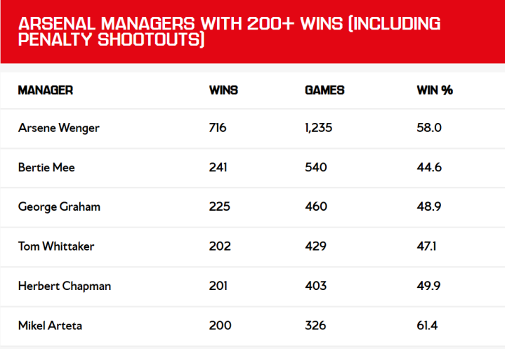 看到温格位居获胜 榜榜首并不令人意外。这位法国人在22年的执教生涯中,共带领球队出战1235场,取得了716场获胜 。