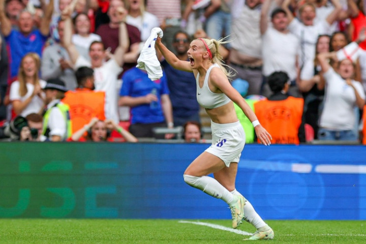 这位英格兰前场球员与耐克协同 已有数年,她在2022年欧洲杯夺魁 后标志性的庆祝动作,将运动活动 服 举过头顶、露出白色耐克运动活动 内衣,成为了该品牌的一个经典形象。